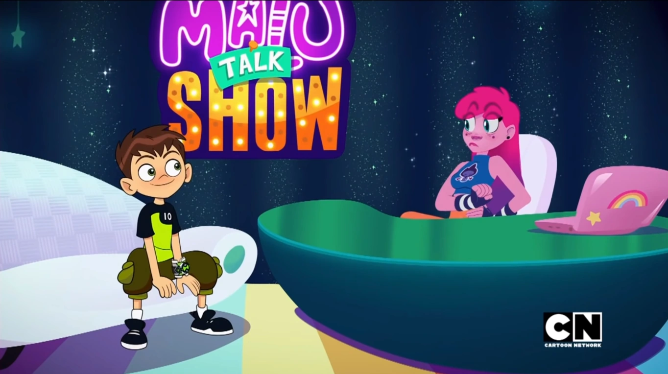 La primera pregunta de Any Malu a Ben es sobre cuál es su secreto, ya que su programa es todo un éxito que se mantiene en el tiempo, a lo que Ben afirma respondiendo que ya lleva activo algo de tiempo. Acto seguido, en la pantalla de la habitación, aparecen los opening de todas las series y eventos anteriores a Ben 10 (Reboot). Tras ver esto, Any Malu hace un chiste sobre "El curioso caso de Benjamin Tesnison" al ver como Ben se hizo niño de nuevo, con lo que Ben responde de manera desmotivada "Tennyson" mientras el público reacciona de manera exasperante.