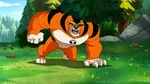 La armadura que recubre a Enormesaurio guarda un poco de energía provocada por los impactos de su cola. Mientras más energía acumula, las placas de su espalda cambian de negro a verde. Cuando todas sus placas se convierten en verde, Enormesaurio Omni-Kix podrá lanzar un potente ataque de energía verde desde la boca. |