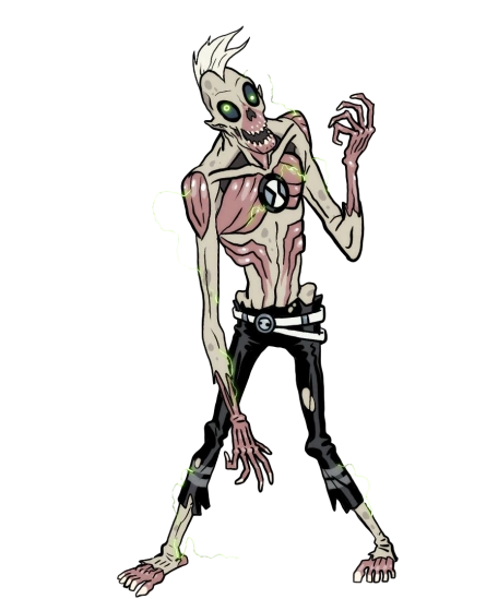 Braindrain tiene la apariencia de un zombi humanoide. Su cuerpo se encuentra en un estado de descomposición, con la piel desgarrada que permite ver sus músculos internos. Él cuenta con un cabello blanco y ojos negros con pupilas verdes desalineados. Este alienígena viste con un pantalón negro parcialmente desgarrado. Alrededor de su cuerpo se pueden apreciar chispas eléctricas de color verde.