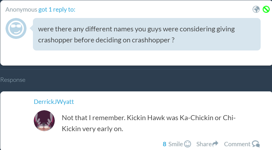 - Halcón tenía varios nombres de trabajo, como Ka-Chickin, Chi-Kickin, Ch'Kickin y KiChicken, antes de que Matt Wayne pusiera su nombre final.78