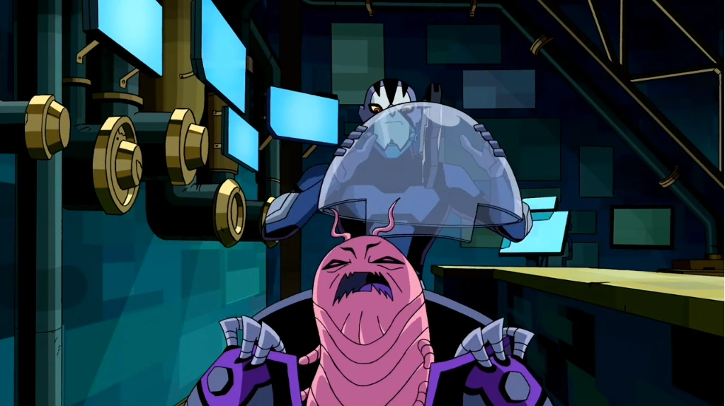 Ahí se reencuentran él con Ben y Psyphon narra lo que había sucedido para que él sea el nuevo Villano y no ayudante de Vilgax. Después, Psyphon le ordena a todos sus aliados que ataquen y pongan varias bombas, luego de esto Ben se va hacia un pequeño lugar y se convierte en Armadillo, quita todas las bombas y luego se encuentra cara a cara con Psyphon, este último le lanza como un láser que le altera el sistema nervioso a Armadillo. Luego se destranforma.