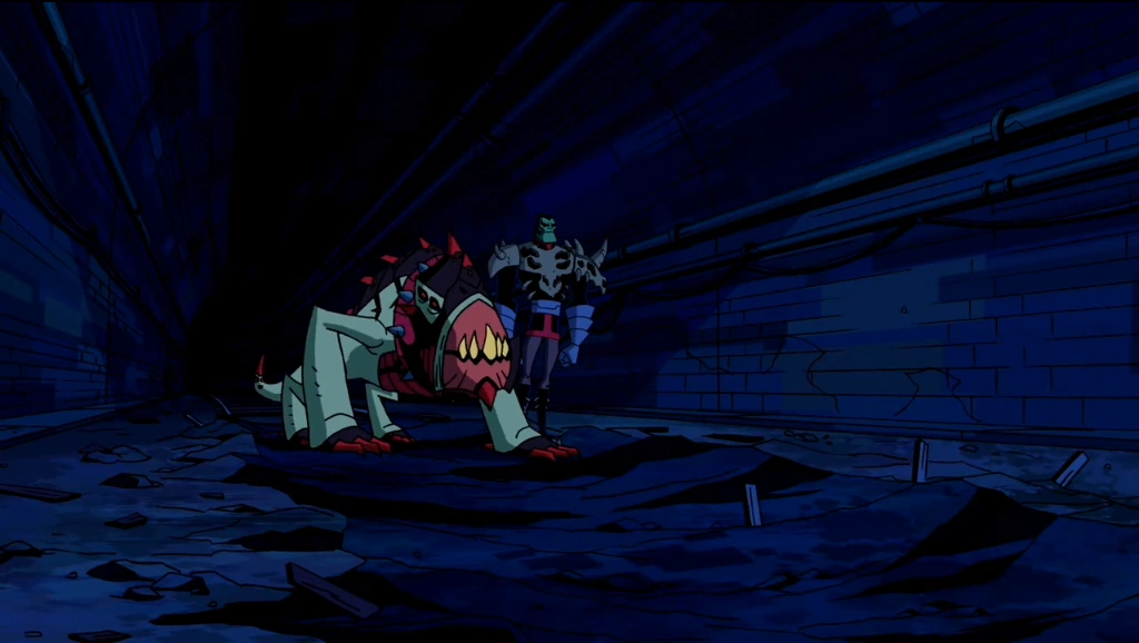 Fuera del túnel (en la superficie), Khyber, una vez más, le pone el Nemetrix a su perro diciéndole que no muestre misericordia, lo suelta y este corre hacia el túnel.
