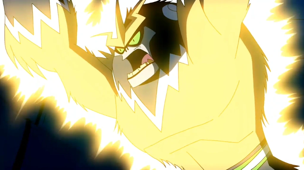 Luego Feedback salta burlándose de él pero se destransforma y cae, y Ben adolorido grita "¡Mejor huye!". Luego "Cinco años después" el Ben de 16 años aparece diciendo: "¡Mejor huye!" a Zombozo, quien estaba siendo perseguido por el equipo, para intentar detenerlo Gwen le lanza Mana pero este lo esquiva, saltando a otro edificio, y a través de un puente de mana, también lo hace el equipo, Gwen derriba con mana a Zombozo y Kevin toma el cerebro que robó, a lo que Zombozo se recupera, toma el cerebro y salta por la ventana a la calle, Ben también salta y se transforma en Lodestar, mientras Kevin absorve metal de un camión y salta hacia Lodestar, que con su poder magnético lo arroja hacia Zombozo, y lo detiene para que no recupere el cerebro. Gwen y Kevin intentan detenerlo pero no lo logran, Zombozo intenta recuperarlo pero Lodestar se lo quita con Magnetismo.