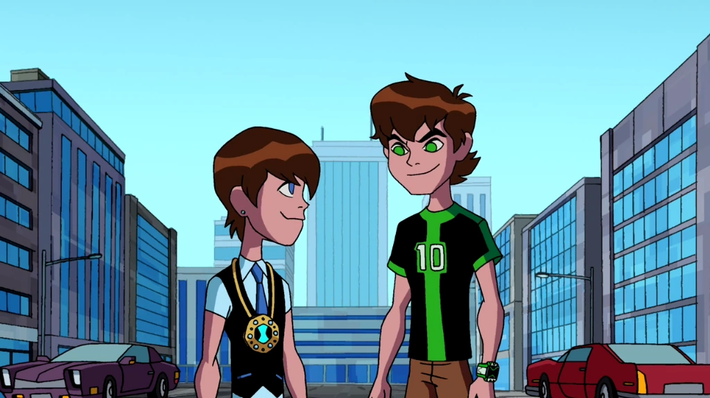 Ben descubre que esta dimensión es igual a la suya solo que con otro Ben salvando el día. Ben y Ben 23 se conocen y salen a charlar. Mientras tanto, Blukic, Driba y Hokestar intentan reparar la máquina, pero llega un cliente y Hokestar intenta atenderlo, pero el cliente se asusta y huye. Ben y Ben 23 se encuentran con unos enemigos de Ben 23. Que son en realidad Sevenseven y Tetrax Shard, acompañados de un robot alienígena, que quieren el Omnitrix de regreso.