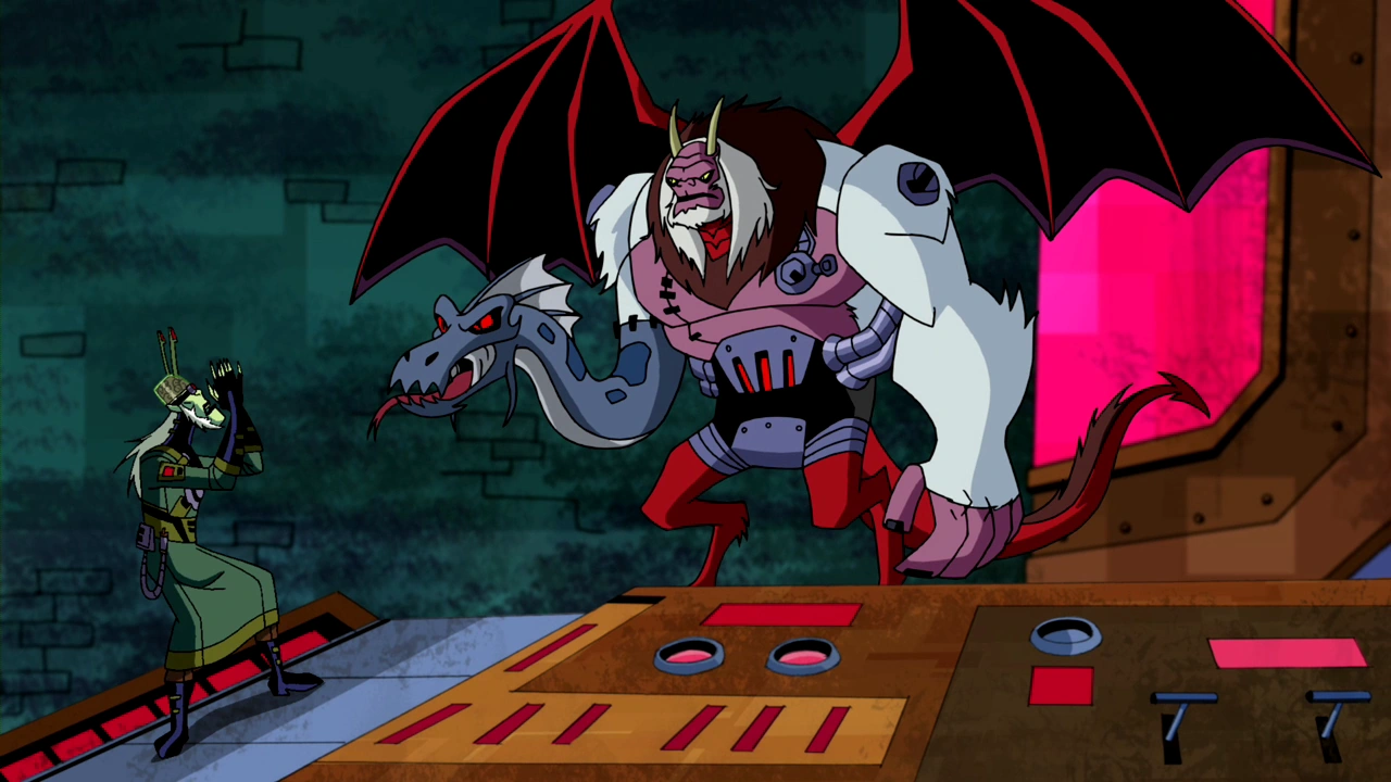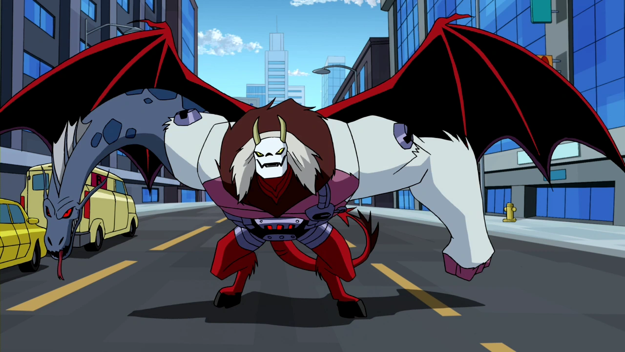 Tiene una cara totalmente roja, con unos grandes ojos amarillos. En Ben 10: Omniverse posee una apariencia muy extraña, juntando a varias partes de animales. En su cara, tiene unos cachos que sobresalen sobre todo lo demás, siempre lleva una máscara blanca. Su cuerpo es rosa pero lo cubre un pelaje totalmente blanco. Su brazo derecho es la cabeza de un dragón, de la cual puede lanzar fuego cuando le plazca. Tiene varias partes mecánicas en todo su cuerpo (Debido a la parte revivida del Dr. Animo). Una de su parte más sobresaliente son sus nuevas alas de dragón.