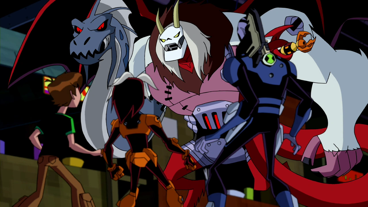 Mientras Zak Sábado, Fiskerton Sábado, Ben Tennyson y Rook Blonko se