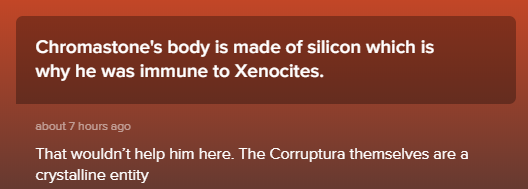 Se ha visto que las corrupturas son efectivas contra los transylians, thep khufans, loboanos, ectonurites tangibles,2 revonianos2 y merlinisapiens.3