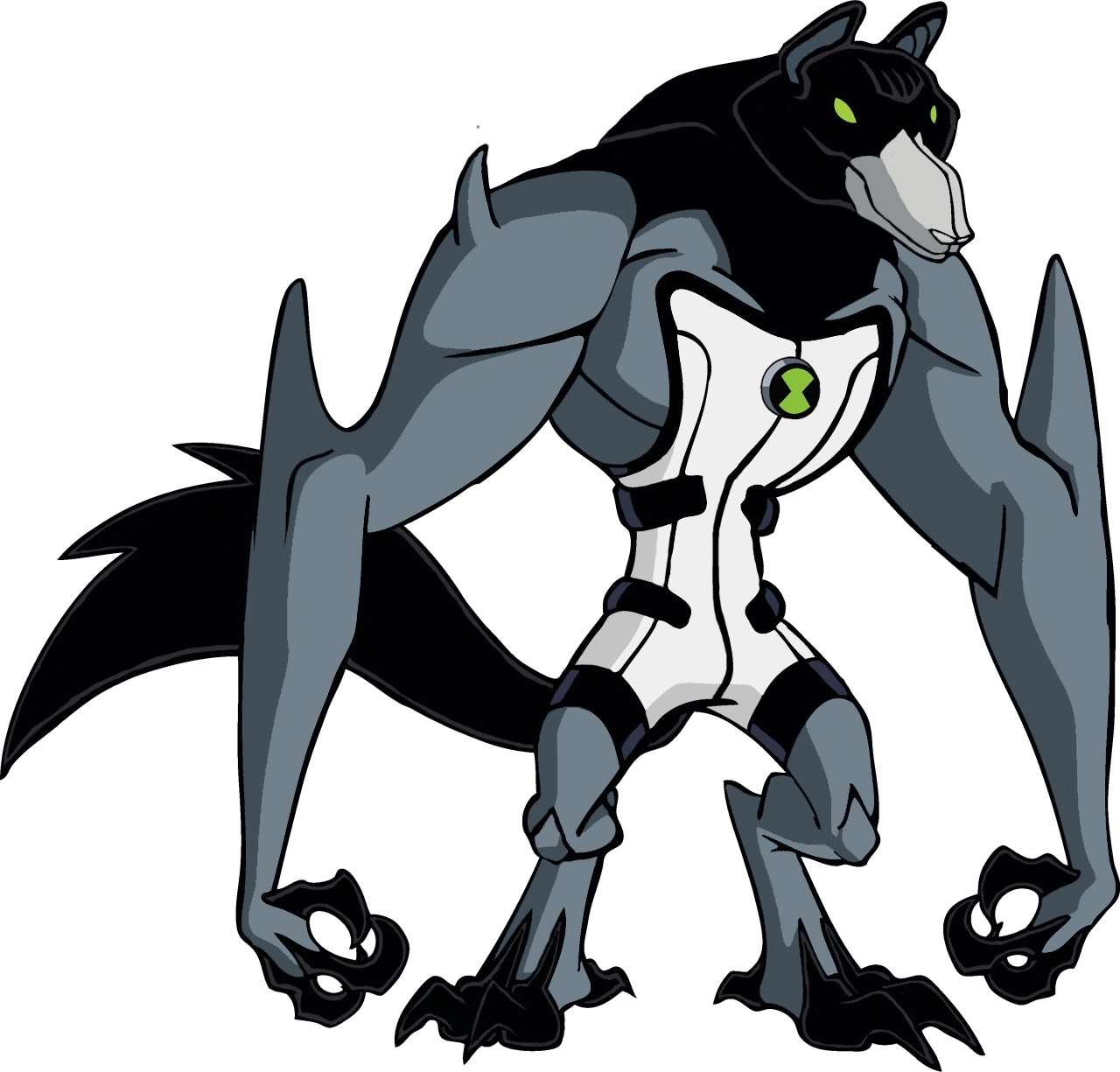 Nella serie originale, Blitzwolfer aveva la pelliccia grigia, tre viticci pelosi e una grande coda folta con tre artigli affilati su ogni mano e piede, e l'interno della sua bocca era verde. Ha gomiti e spalle chiodati e indossava una tuta bianca con strisce nere e il simbolo originale dell'Omnitrix sulla parte inferiore dello stomaco.