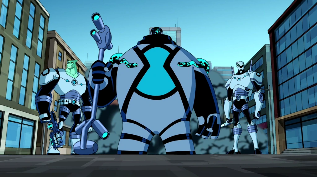 W tym samym czasie Tetrax powraca, lecz tym razem z SiedemSiedem i Intelektusem. Tennyson zmienia się w Inferno, natomiast Ben 23 w Elektro Yeti, alternatywnym odpowiednikiem Shocksquatcha. Ben pokonuje Sotoraggianina i Petrosapiena. Ben 23 zastanawia się dlaczego kamery nie rejestrują walki, po czym zauważa, że policja otoczyła bar z koktajlami. Zirytowany w mgnieniu oka pokonuje Intelektusa, którym okazuje się być Galwan, po czym przygotowuje się do zabicia go, poprzez złamanie go. W ostatniej chwili Ben ostrzega swojego odpowiednika, że ma przestać, ponieważ Azmuth jest twórcą zegarka bohatera.