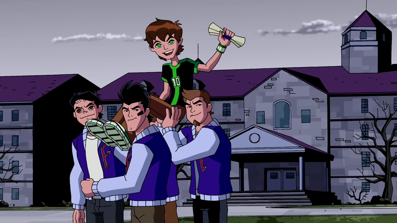 - Na koniec odcinka Ben dostaje doktorat, ku zdziwieniu Kevina, Gwen i Rooka.