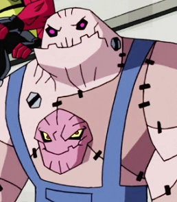 Sua primeira aparição foi no episódio Quanto Mais as Coisas Mudam, Parte 2 como um lacaio de Psyphon em seu novo negócio de destruir estabelecimentos que param de pagar a taxa que ele cobra para a tal proteção. Barriga é um alienígena curioso, pois parece com um tipo de boneco costurado. Outra peculiaridade dele é que ele apresenta duas cabeças, a mais sensível (emocionalmente falando), e a outra localizada em sua barriga, que é a que se comunica com as pessoas.No episódio De Volta à Eternidade,sua cabeça enquanto está assaltando também fala.