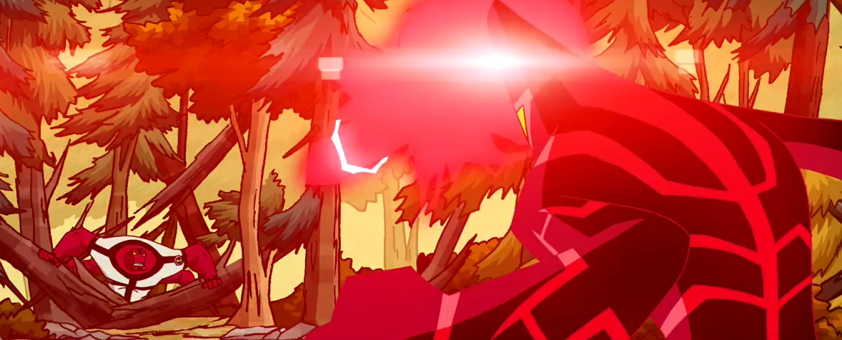 discurso típico de vilão sobre persegui-lo até conseguir o Omnitrix, e em seguida, Ultra T aparentemente é engolido pela visão. Posteriormente, seguindo uma sequencia de golpes, Ben vence Rojo com a ajuda de Gwen.