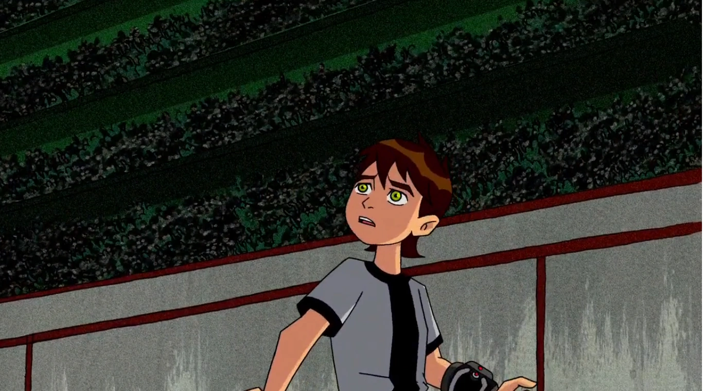 Ben fica mais desesperado ainda, quando descobre que o Omnitrix deu defeito e que ele iria ficar na pele do Massa Cinzenta por muito tempo.
