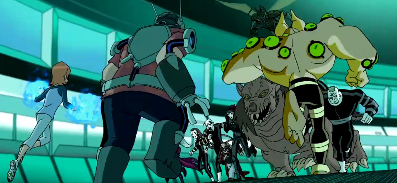No caminho, Ben descobre a origem de Animal, então invadindo seu laboratório. Logo, ele usa a forma de vida alienígena Quatro Braços ao ser parado pelo Mamute mutante controlado pelo Doutor. Mesmo derrotando-o, Animal foge para conquistar um prêmio de Ciências que nunca pôde ganhar, e Quatro Braços é obrigado a ir atrás de uma Gaviota Mutante a qual captura Gwen. Como seu aparelho desarma, junto ao avô eles vão pelo trailer até Gwen, logo se transformando no alienígena Insectóide e despistando o pássaro.