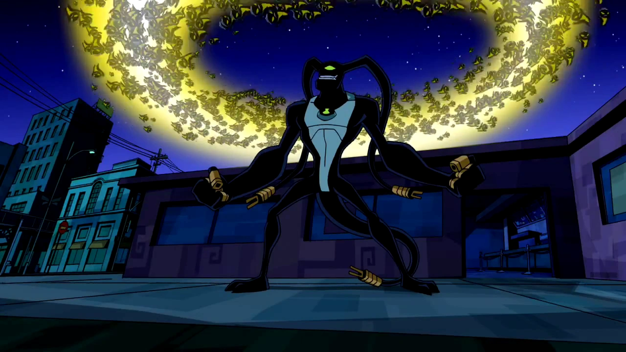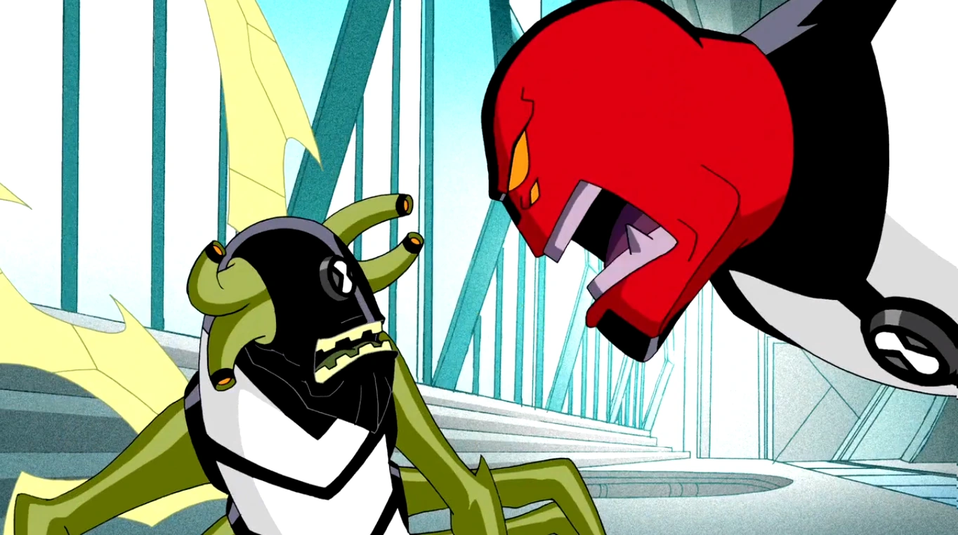 Depois de Ben mencionar o jogo, Kevin tem uma idéia e irem os dois para um tanque de armazenamento perto das docas, onde Kevin usa seu poder para quebrar a porta de segurança e mostra a Ben o lugar onde o novo jogo é mantido. Mas eles são descobertos pela polícia, e depois de uma tentativa fracassada de escapar com o jogo, Ben torna-se Insectóide que começam a voar junto com Kevin.