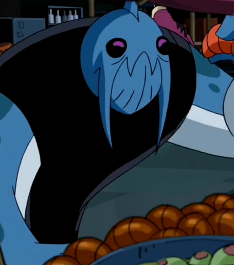 É um ser muito delgado com braços longos e grossos, possui uma pele azul com manchas mais escuras e uma antena na cabeça que emite luz. Usa sapatos pretos, camisa preta simples sem manga e calças marrons.