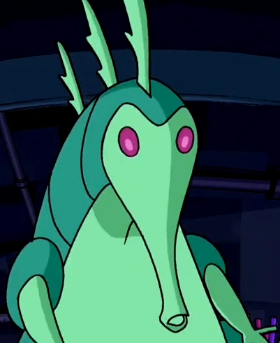 O vendedor de vitamina protozoana é um alienígena alto que se assemelha a uma lagarta, com uma cara de tamanduá. Seu corpo longo possui coloração verde e tem várias mãos (patas). Ele tem três cristas na cabeça e olhos rosa.
