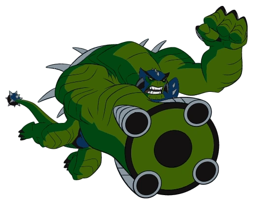 | Abilităţi | Super forţă Super durabilitate Răget puternic Carapace cu ţepi Coadă buzdugan Mâini rachete Generare de rachete | |