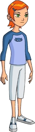 В Бен 10 у Гвен были короткие рыжие волосы оливковые глаза, как у Бена она носила голубую майку со светло-синими рукавами и белыми леггинсами.