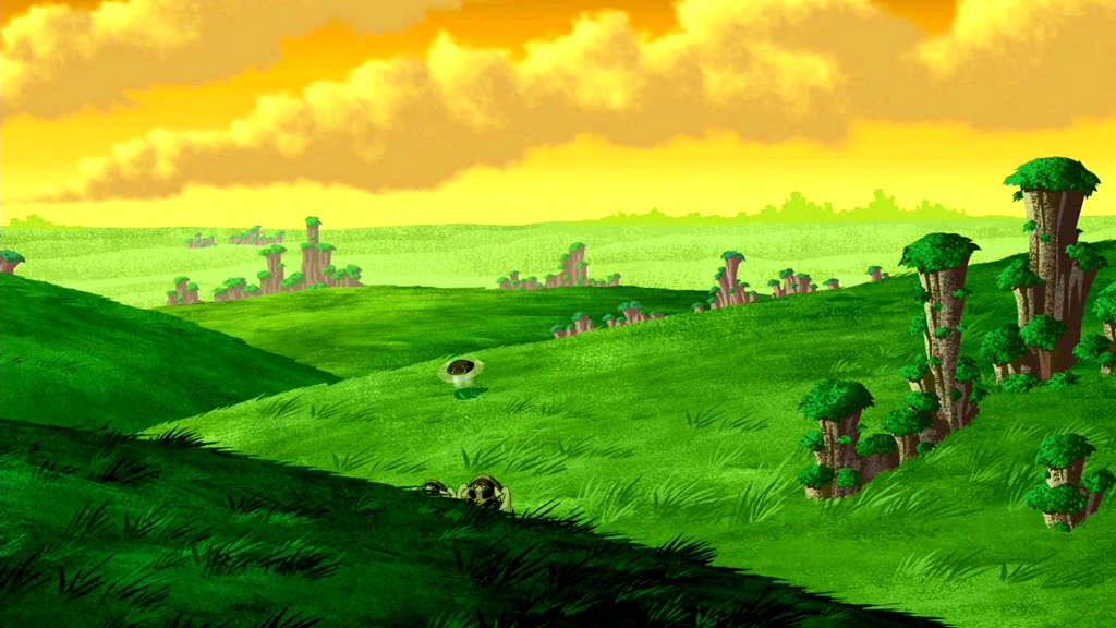 Aldabra is an idyllic world of lush, green, grassy, rolling hills, speckled with tall, willowy trees that sway in the breeze. The Geochelone Aerios have erected fascinating architectural wonders all over the planet, which blend in harmoniously with the landscape. These chameleon-like structures alter their very colors and patterns by using advanced camouflage technology to continuously match even the subtlest changes in the environment.[AP 1]