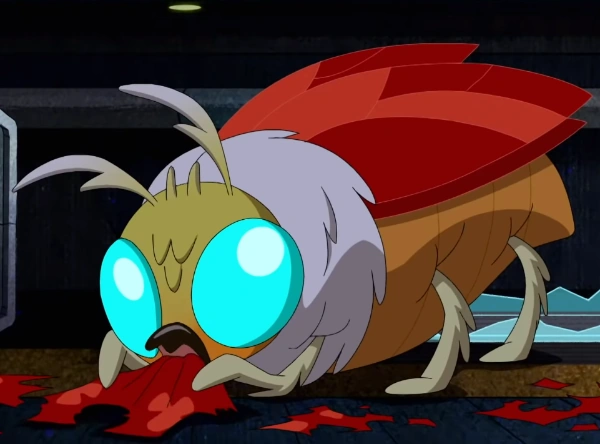 The baby moth, originally a cocoon, appeared in Gentle Ben, where it was transported from Lux's laboratory to a reservation with the rest of her family. After being hoisted into a cage into the Omni-Copter for transport, she is "awakened" by the fight between Omni-Kix Four Arms and Tim Buktu, emerging from her cocoon.