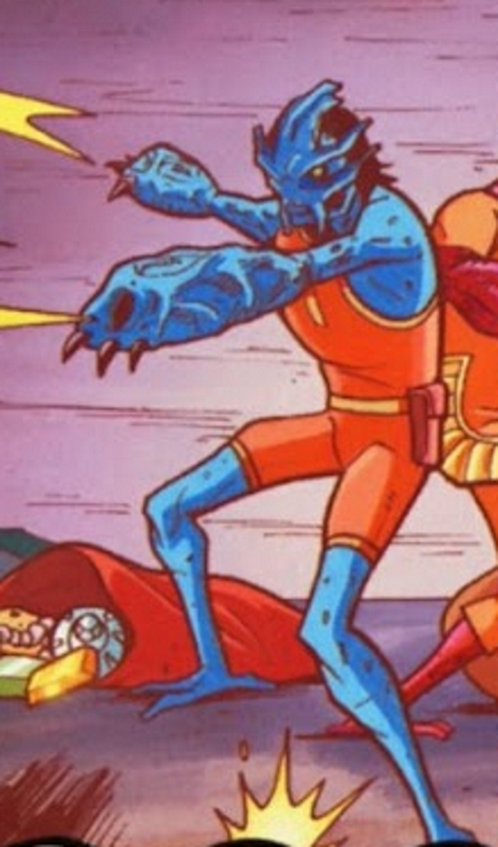 Gontu is able to fire white or pink blasts from the orifices in his forearms. Oddly, they phase through intangible beings such as Big Chill as though they were physical objects.