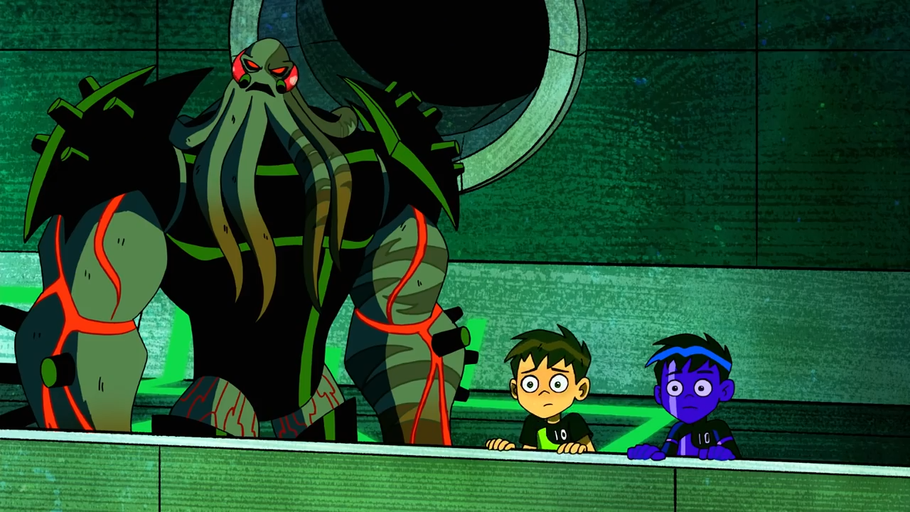 Vilgax and Heatblast looks at the Fulmini army, noticing the huge amount of soldiers. Ben reverts back to human unexpectedly. Ben yells out that he's totally useless now, and Vilgax agrees. Ben says for an evil genious, it took Vilgax a while to open the door. Vilgax tells him that he didn't open it, and Ben asks who did. A voice from behind them reveals that he helped them.