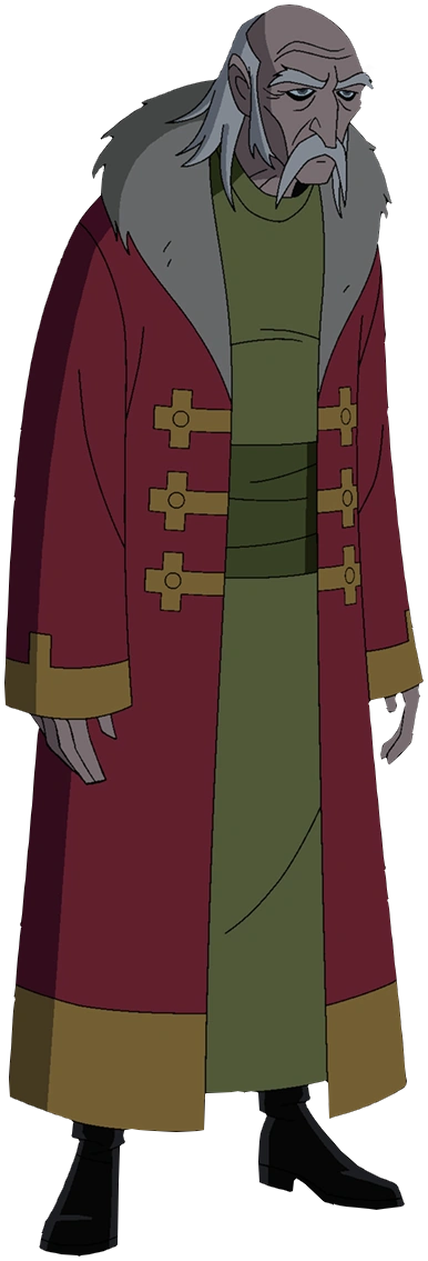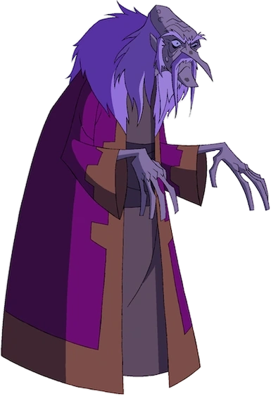 In Omniverse, he was shown to mostly be the same, except his hair was longer and he had a crooked nose. His skin had paler color, and has some liver spots on his face. His back was more hunched, and his attire now consisted of a purple robe with orange trim and pale brown clothing underneath, with a dark brown midsection.