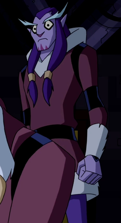 He resembles other Kraaho, having bluish skin, lavender hair, pink facial markings, and prominent white eyebrows, but is skinnier than most others.