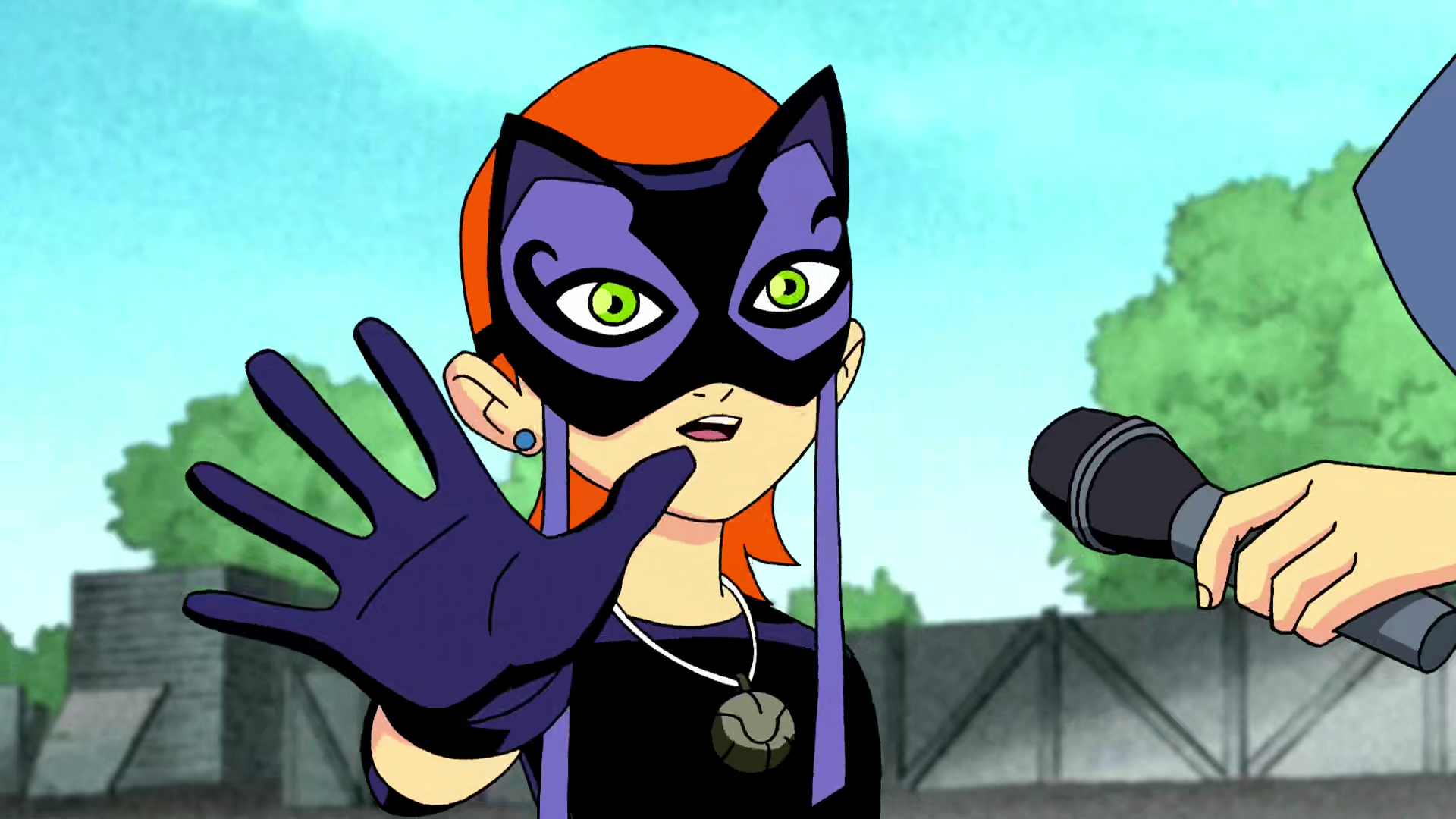 With everyone saved, Wildmutt climbs out of the cement and shakes the cement off. Lucky Girl is being interviewed by reporters, who're asking her just how she rescued everyone. She's not the least bit modest about it, saying she did it with luck. She then repeats XLR8's earlier statement while waving at Wildmutt. Wildmutt just walks away annoyed. Meanwhile, in another part of town, Hex is searching for the charm. He catches the report about Lucky Girl on television and sees the charm around her neck.