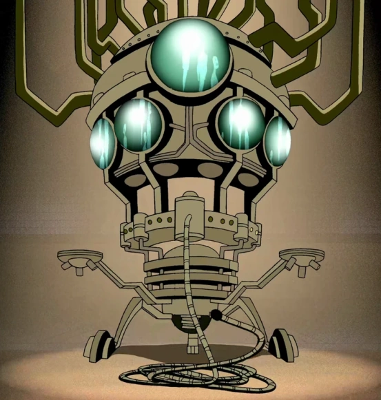 The Psyclown was a towering machine made out of dull-brown metals. It stood on three legs, and had a tether extending out from its front. On top of the Psyclown were several diverging pipes bellowing steam. It had five glass-like blue orbs on its front, which contained the drained energy.