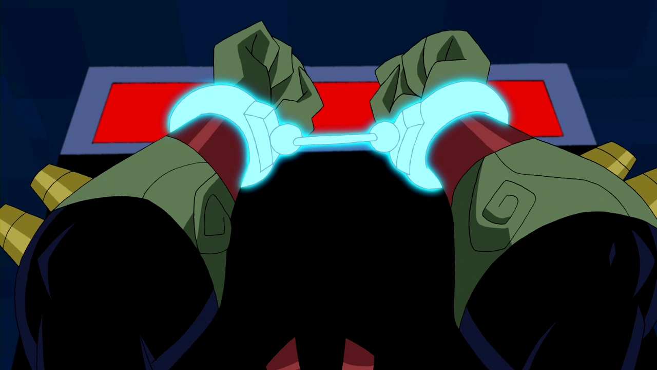 In Vilgax Must Croak, Ben used it (via a switch) to bind Vilgax's hands together while he, Rook, Hobble and two Plumbers took him to Incarcecon. After General Attea fired the Techadon Dissipator, Vilgax jumped in front of the beam, destroying his shock manacles.