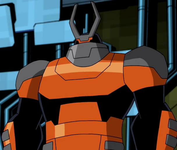 In Alien Force and Ultimate Alien, the Techadon robots are large muscular humanoid-like samurai-esque automatons. They have an egg-shaped head with no face, but instead an upward-pointing arch-shaped horn, resembling a Kabuto. They have dark grey plating on the armor surrounding their heads, necks, hands, shoulders, hips, and knees with black lining around it while their inner bodies and heads are black. Their outer armor is usually seen in a wide variety of colors, including red, blue, yellow, white, and silver.