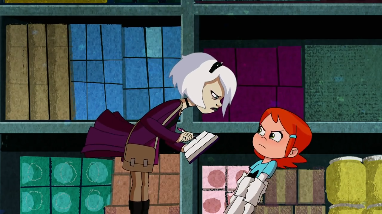 The episode starts off with Ben and Gwen walking through Biggie Box, surprised that Max allowed them to go. A little kid walks up and recognizes Ben, pointing out he saved Adrenaland. The father picks him up, and thanks Ben. He also questions if Gwen was a fan, however Gwen corrects him, stating that she helped save the park too. However, he ignores it. Ben notices Gwen is sad, and he attempts to cheer her up, however, he only makes her more angry. As Gwen walks from the ice cream stand, an unknown figure is seen watching Gwen. A piece of paper is dropped on Gwen’s ice cream, turning it into a monster. Gwen tries to get everyone out of there, and she goes to hide. The monster continues to chase Gwen around. Ben transforms into Heatblast to fight it. He questions where it came from, and Gwen is confused, as she assumed it was Ben’s fault. A girl calls them from a distance, and it is revealed to be Charmcaster. She states that she is here to get payback for what Gwen did. Ben tries to introduce himself, however Charmcaster doesn’t put up with him, and sends him through a portal elsewhere. Heatblast continues to fight the monster; he manages to blow it up.