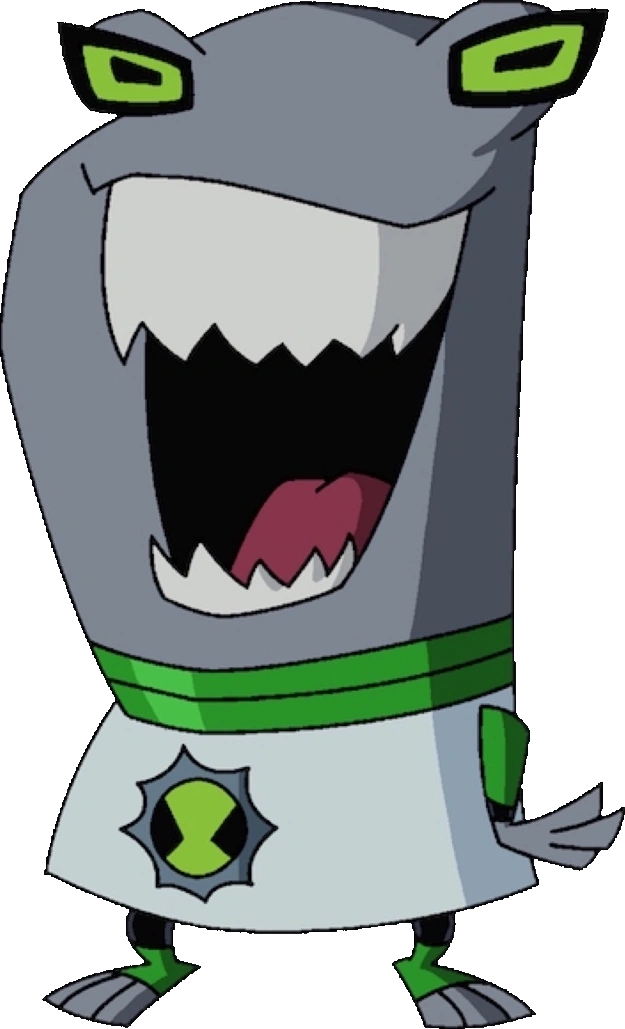Ujin has really big and sharp teeth, square shaped eyes and a big head. He almost resembles a shark.